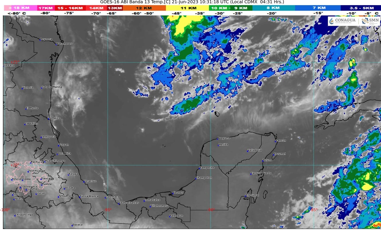 1.- Se mantiene la tercera onda de calor sobre la mayor parte del país incluido Cancún y el Estado de Quintana Roo, así mismo el ingreso de humedad proveniente del Golfo de México y del Mar caribe hacia la región peninsular, originará cielo medio nublado con incremento de nublados durante el día, lluvias con intervalos de chubascos acompañados de actividad eléctrica más frecuentes por l tarde y noche sobre la mayor parte del Estado de Quintana Roo, las temperaturas serán muy calurosas a bochornosas en el transcurso del día y cálidas a calurosas por la noche y madrugada sobre el Estado.