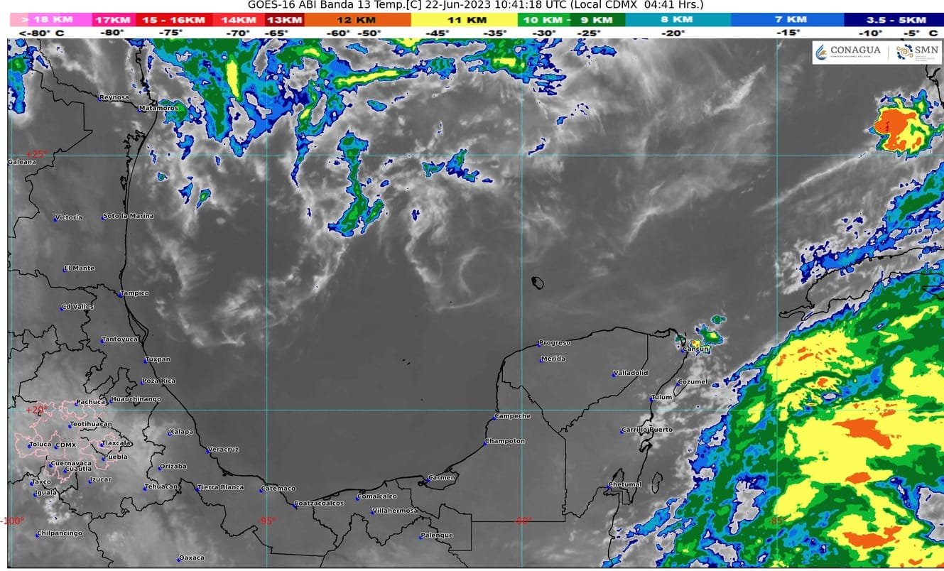 1.- Se mantiene la tercera onda de calor sobre la mayor parte del país incluido Cancún y el Estado de Quintana Roo, así mismo el ingreso de humedad proveniente del Golfo de México y del Mar caribe hacia la región peninsular, originará cielo medio nublado con incremento de nublados durante el día, lluvias con intervalos de chubascos acompañados de actividad eléctrica más frecuentes por l tarde y noche sobre la mayor parte del Estado de Quintana Roo, las temperaturas serán muy calurosas a bochornosas en el transcurso del día y cálidas a calurosas por la noche y madrugada sobre el Estado.