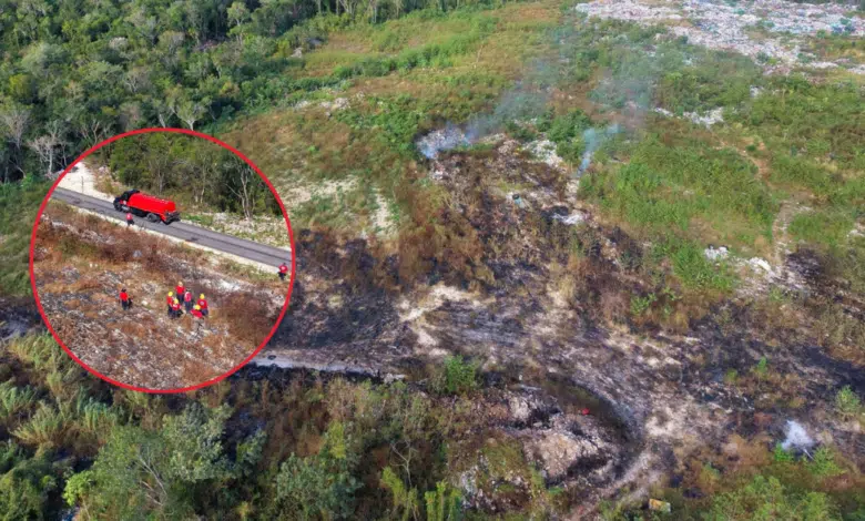 Elementos del Cuerpo de Bomberos de Cancún y personal de Protección Civil de Benito Juárez atendieron un incendio de vegetación registrado a un costado de la carretera Cancún–Mérida, el cual representaba riesgo de propagarse hacia zonas forestales cercanas.
