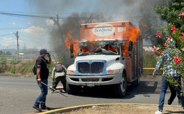 Posteriormente, el contingente se trasladó en autobuses hacia el Libramiento Poniente de la capital michoacana, donde atacó la sede de la fiscalía con cohetes, piedras y palos. En ese mismo punto, también fueron incendiadas unidades de empresas de agua y refrescos que previamente habían sido retenidas por los manifestantes.