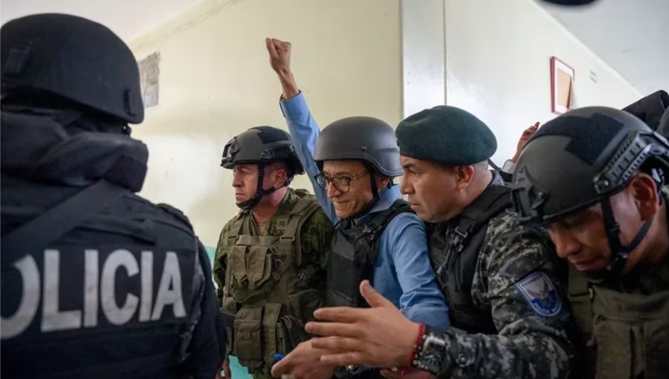 Christian Zurita, el candidato de del movimiento Construye que reemplazó al asesinado Fernando Villavicencio en las elecciones generales extraordinarias de Ecuador, votó en una escuela en el norte de Quito, donde apareció con un chaleco antibalas y casco.Rodeado de un fuerte operativo de seguridad, el periodista de 53 años fue cubierto por un escudo protector cuando estaba en la mesa de votación. Saludó y levantó el puño mientras policías fuertemente armados lo rodeaban.