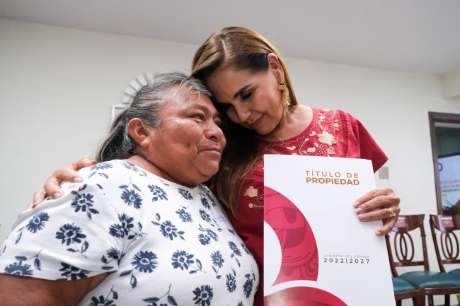En un acto de auténtica justicia social y legalidad, la gobernadora Mara Lezama Espinosa encabezó la entrega de 32 títulos de propiedad que garantiza certeza patrimonial; algunas personas llevaban más de 30 y hasta 40 años en espera y a partir de hoy ya cuentan con seguridad jurídica sobre su patrimonio.