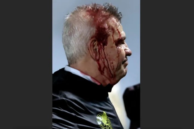 Al ir a saludar al seleccionador hondureño, Reinaldo Rueda, el técnico mexicano recibió el impacto del objeto en la cabeza, lo que provocó que empezara a sangrar y que tuviera que ser atendido por los servicios médicos.
