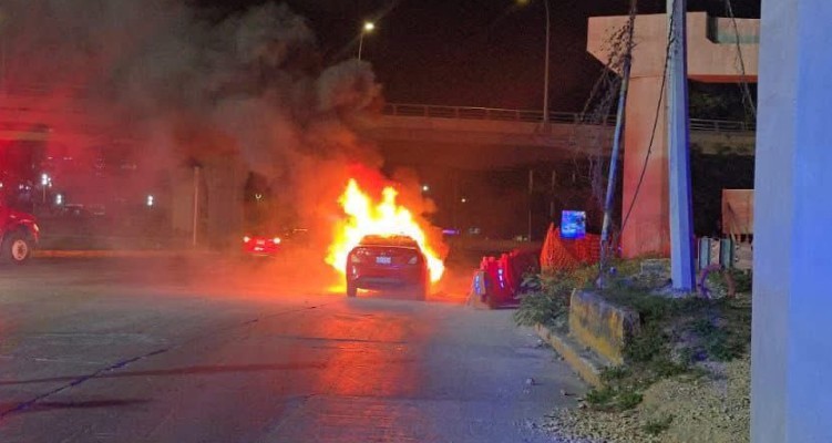 Un vehículo se incendió en circulación sobre el Boulevard Luis Donaldo Colosio Murrieta, a la altura de la supermanzana 57, en el tramo donde se construye el puente Nichupté. El conductor salió de la unidad antes de que el fuego se propagara al interior del automóvil.