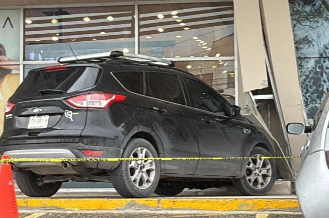 El vehículo terminó impactándose contra un muro y el cristal de una tienda, que resultó con daños considerables. No se reportaron personas lesionadas.