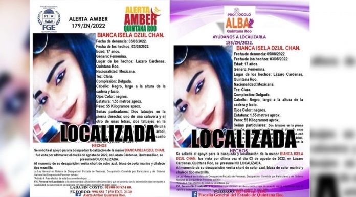 La Fiscalía General del Estado de Quintana Roo (FGE) confirmó este fin de semana el hallazgo de los restos óseos de Bianca Isela Dzul Chan, una joven de 17 años que fue reportada como desaparecida en 2022 en el municipio de Lázaro Cárdenas. La ficha de búsqueda fue oficialmente desactivada por la institución el día de ayer, tras la identificación forense.