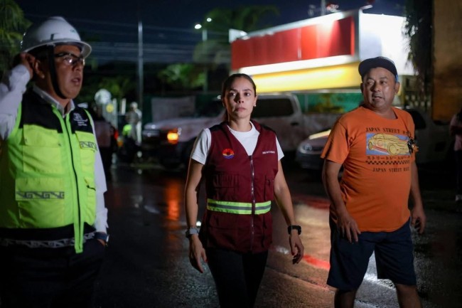 Como parte de las acciones para prevenir encharcamientos durante esta temporada de lluvias, la Presidenta Municipal, Ana Paty Peralta, junto al secretario general del Ayuntamiento, Pablo Gutiérrez Fernández, supervisaron los trabajos de desazolve y mantenimiento urbano que llevó a cabo la Dirección General de Servicios Públicos en la avenida Andrés Quintana Roo, a la altura de la Supermanzana 95