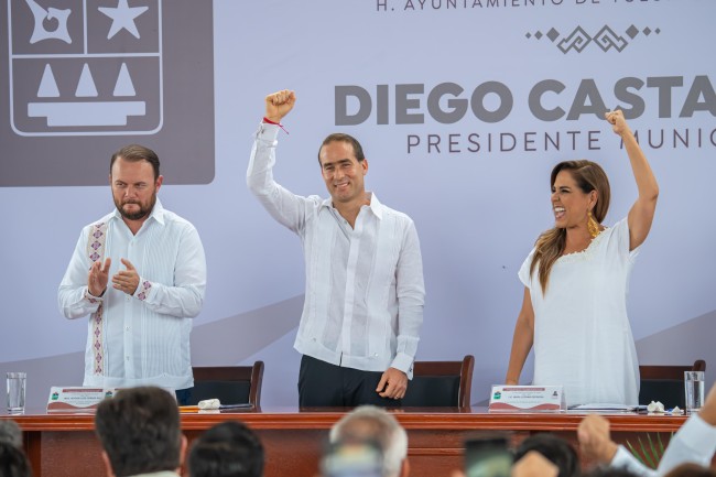 Frente a la gobernadora Mara Lezama, -quien, al igual que los representantes de los poderes legislativo y judicial, acudió como invitada especial a la instalación del H. Ayuntamiento 2024-2027-, el presidente municipal de Tulum, Diego Castañón, refrendó su compromiso de encabezar un gobierno municipal cercano a la gente, que escuche sus necesidades y las atienda.