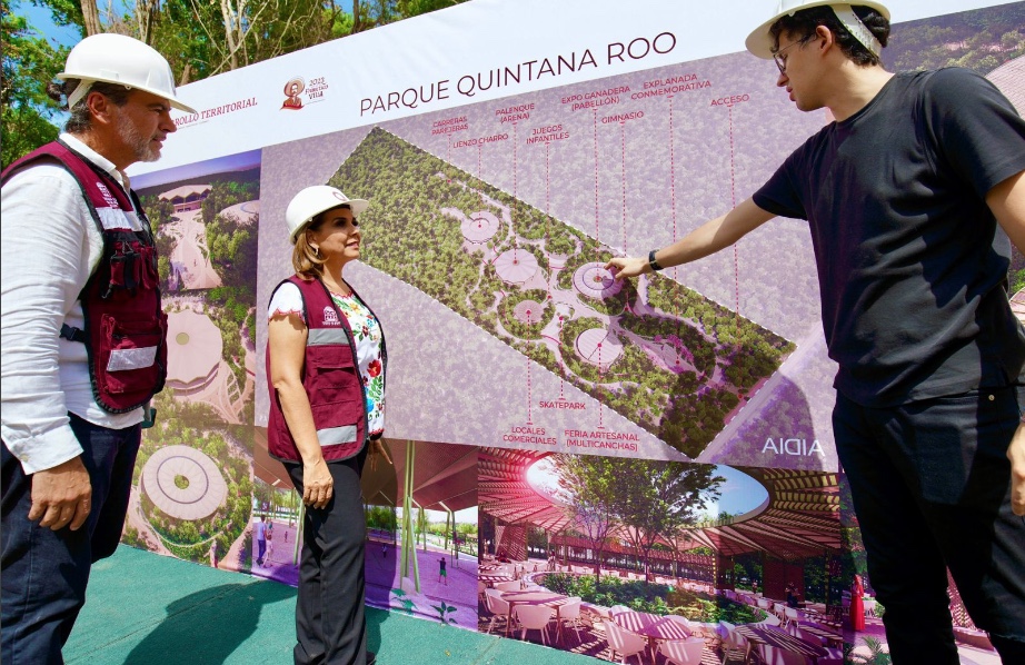 La titular del Ejecutivo recorrió la obra, ubicada a tan solo 400 metros de la antigua ExpoFer y muy cerca del Aeropuerto Internacional de Chetumal y de la futura estación del Tren Maya, un espacio de más de 30 hectáreas donde se edificará un proyecto histórico que transformará la vida de las y los quintanarroenses con inversión, en una primera etapa, de alrededor de 300 millones de pesos, con espacios para el goce y disfrute de grandes y chicos.