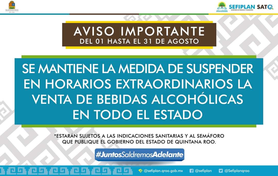 Durante todo el mes de agosto el Gobierno del Estado continuará con la vigilancia de los horarios establecidos para la venta de bebidas alcohólicas en los 11 municipios del Estado, esto debido a los protocolos que se informaron semanas a trás, en busca de reducir el número de contagios por COVID-19.