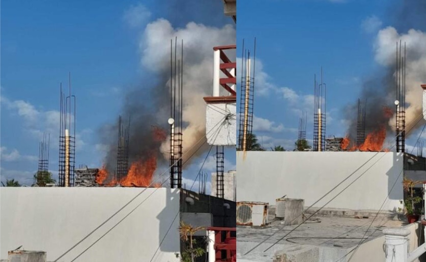 Se reportó el incendio en una construcción ubicada a un costado del hotel Sol Caribe, en el primer cuadro de la isla.