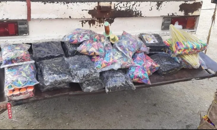 De acuerdo con datos proporcionados, fueron más de 200 kilos de pirotecnia de diversos productos asegurados y que también serán puestos a disposición de las Fuerzas Armadas, por tratarse de un delito de índole federal.