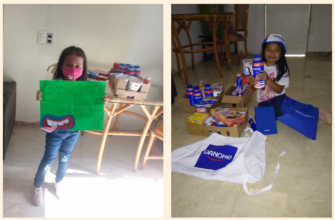 Representantes de Danone felicitaron a Valerie y le entregaron algunos de sus productos más consumidos, así como unos souvenirs de la marca para que la pequeña los pueda utilizar con su familia. Por supuesto, su yogur favorito, el de fresa, no pudo faltar.