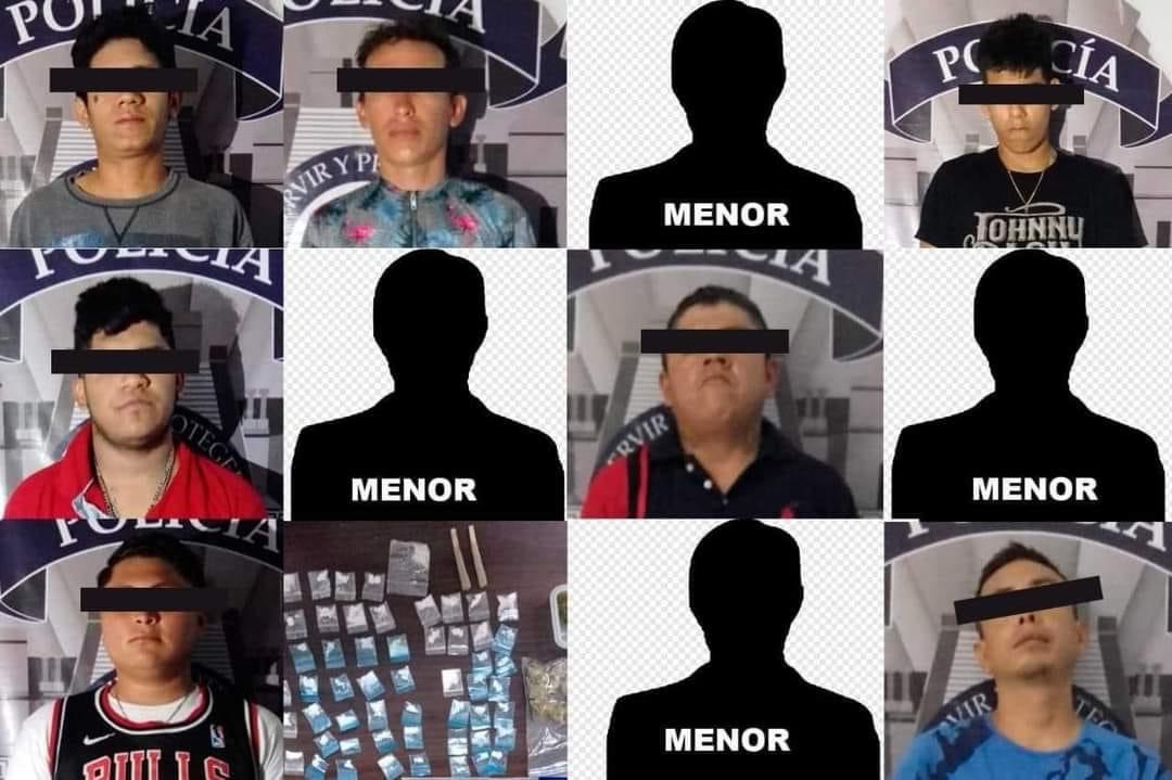 Derivado de operativos en la zona continental de Isla Mujeres, se detuvieron a 11 personas entre ello 4 menores de edad con posesión de drogas.