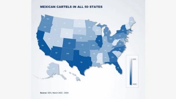 La Agencia Antidrogas Estadunidense dio a conocer este jueves la Evaluación Nacional de la Amenaza de las Drogas 2024, (NDTA, por sus siglas en inglés) de 2024, que incluye un mapa que documenta la presencia de ambas organizaciones criminales en los 50 estados de la Unión Americana.