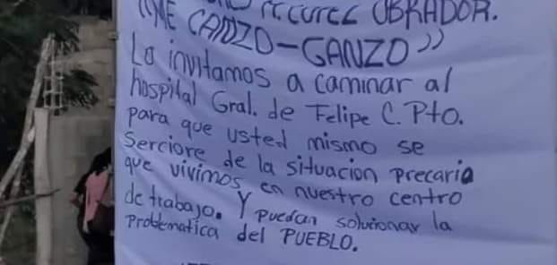 El personal del hospital en Felipe Carrillo Puerto aprovechó la presencia del presidente Andrés Manuel López Obrador para exponer, a traves de una manta, la inconformidad por el abandono en el que se encuentra pidiéndole su intervención.