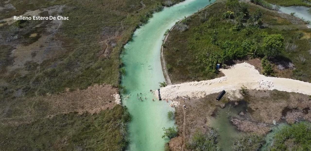 La bióloga investigadora María Luisa Villareal denunció, a través de sus redes sociales, que se está rellenando el Estero de Chac y se están poniendo tuberías como parte de los trabajos del Tren Maya.