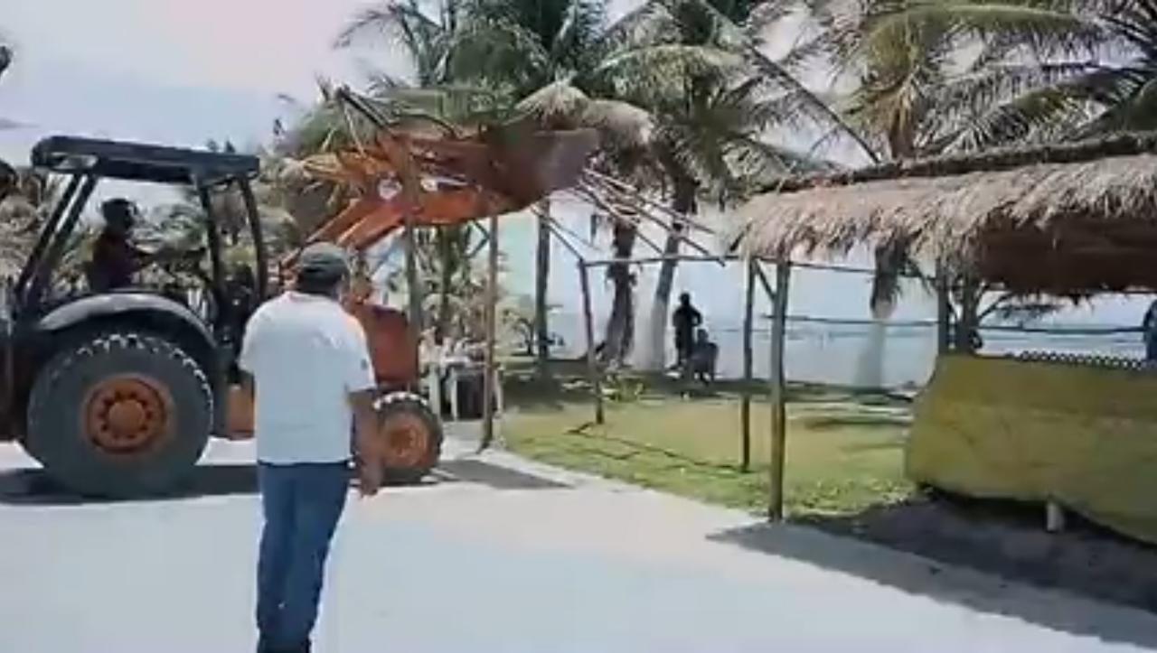 Con maquinaria pesada el director de Fiscalización del Ayuntamiento Emmanuel Magaña acudió para destruir las Palapas, sin importar que es el único sustento de varios artesanos de esta zona.