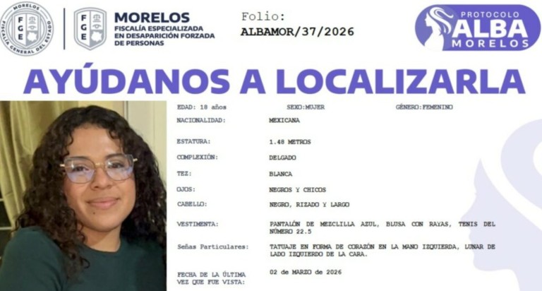 La joven desapareció el viernes 20 de febrero de 2026, pero autoridades de la entidad localizaron su cuerpo hasta el lunes 2 de marzo, en un predio ubicado en la zona norte de Cuernavaca, Morelos.