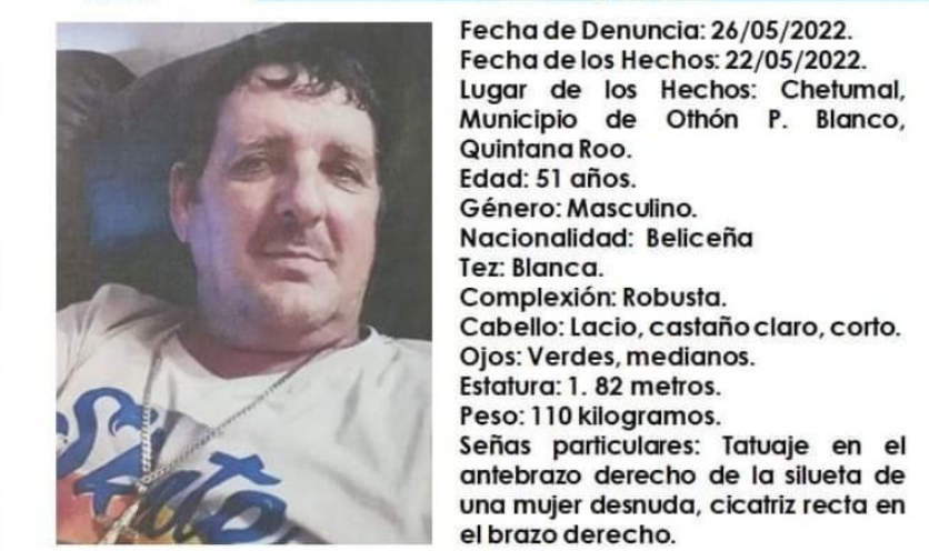 Un hombre originario de Belice fue reportado como desaparecido en Chetumal, capital del Estado de Quintana Roo, por lo que la Fiscalía General del Estado de Quintana Roo emitió una alerta para ayudar a su localización.