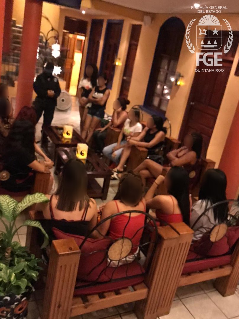 Solidaridad.- La Fiscalía General del Estado de Quintana Roo, informa que Policías de Investigación adscritos a la Fiscalía Especializada de Investigación de Trata de Personas lograron la captura de siete sujetos y dos mujeres por el delito de trata de personas con fines de explotación sexual, tras cumplimentar una orden de cateo -emitida por un juez de control- en un inmueble ubicado en la 5ta avenida, en la colonia Centro, del municipio de Solidaridad.