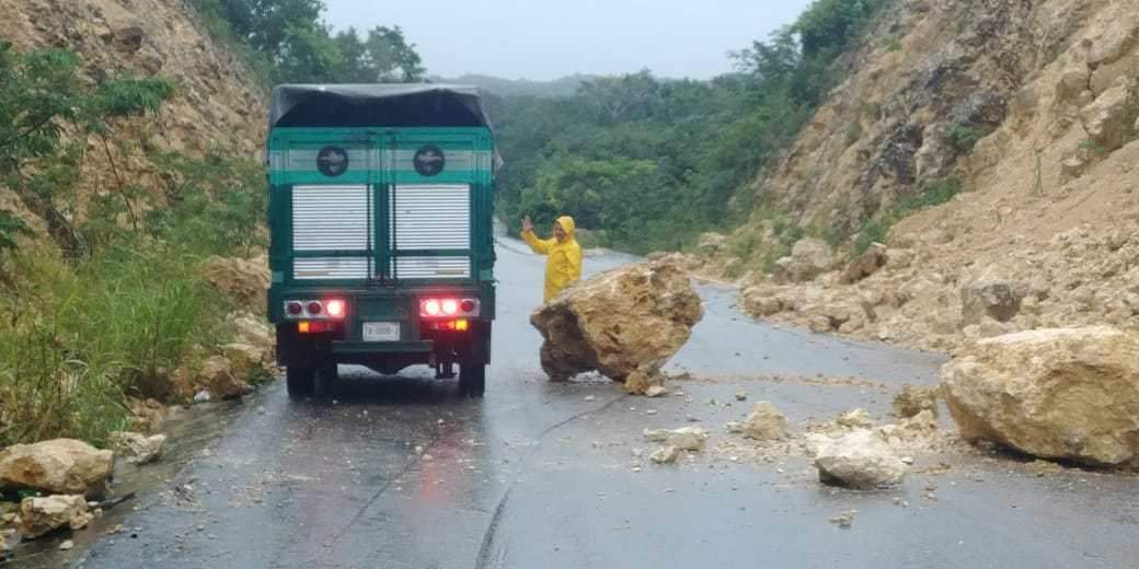 Este fin de semana, se registró un deslave que dejó sobre la vía, dos piedras enormes que bloquearon ambos carriles de la carretera, por lo que fueron retiradas con un tractor.