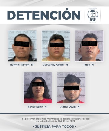 Las cinco personas detenidas, así como los indicios asegurados, quedaron a disposición del Ministerio Público, en tanto que, en el término legal establecido, definen la situación jurídica de los investigados.