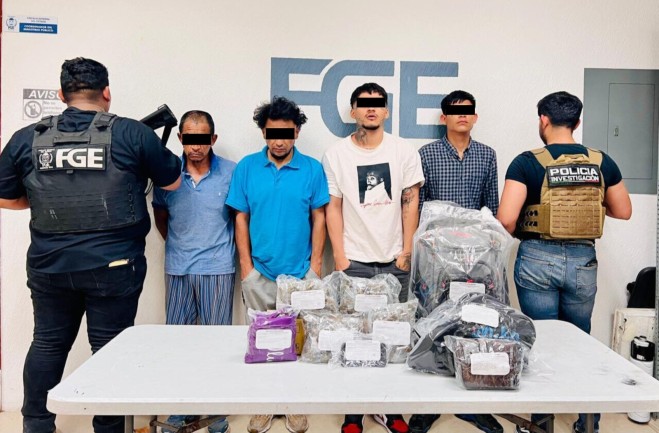 En una primera acción, los agentes detuvieron a Evan Abib “N”, César “N”, Jaime “N” y José Lucio “N” en la avenida Misión del Carmen, esquina con Boulevard Misión Villamar 1, tras observar un intercambio de presuntos estupefacientes. Al notar la presencia policial, los señalados intentaron huir; sin embargo, los elementos policiacos lograron interceptarlos, para proceder a una inspección conforme a la ley.