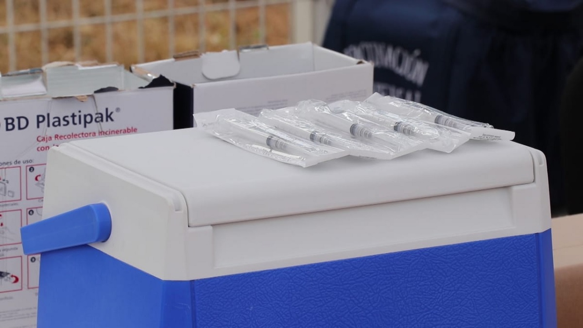 Al detenido le fue decomisada una hielera en la que llevaba 20 presuntas dosis de la vacuna contra COVID-19 con la marca de la farmacéutica Pfizer.
