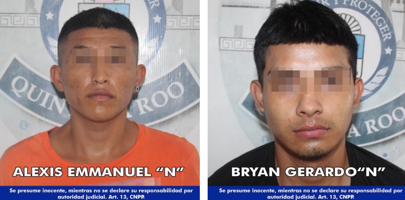 La tarde de este jueves, elementos de la Policía Quintana Roo lograron la detención de Alexis Emmanuel “N” y Bryan Gerardo “N”, por su presunta responsabilidad en delitos contra la salud, en el municipio de Benito Juárez.