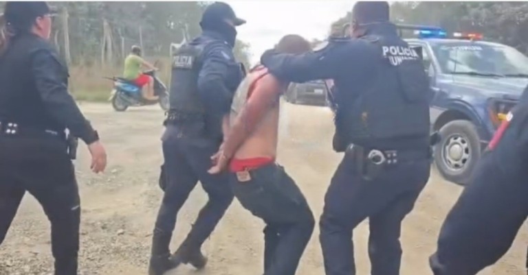 Tras recibir el reporte, elementos de la Policía Municipal de Cancún se trasladaron al lugar. Al arribar, los vecinos señalaron al presunto responsable; sin embargo, al notar la presencia de las autoridades, el sujeto emprendió la huida e ingresó a una zona de maleza cercana para evitar ser detenido.