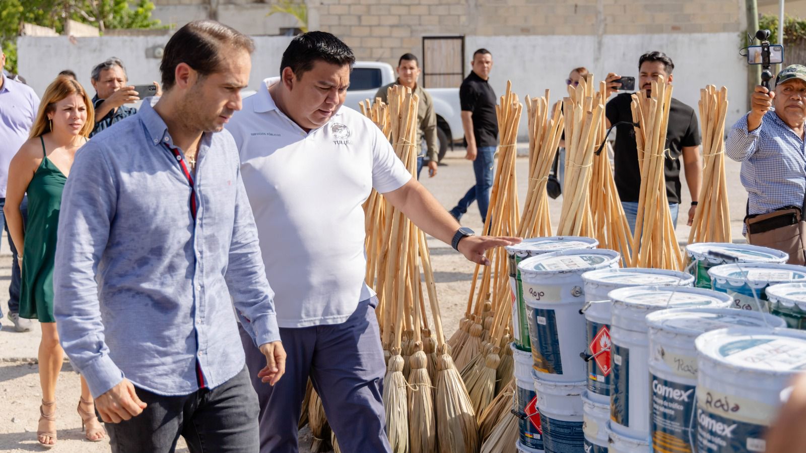El Presidente Municipal de Tulum, Diego Castañón Trejo, encabezó la entrega de material y equipos para la atención de áreas públicas como: parques, jardines, camellones y vialidades que permita garantizar una nueva fisonomía que redunde en el bienestar de las familias.