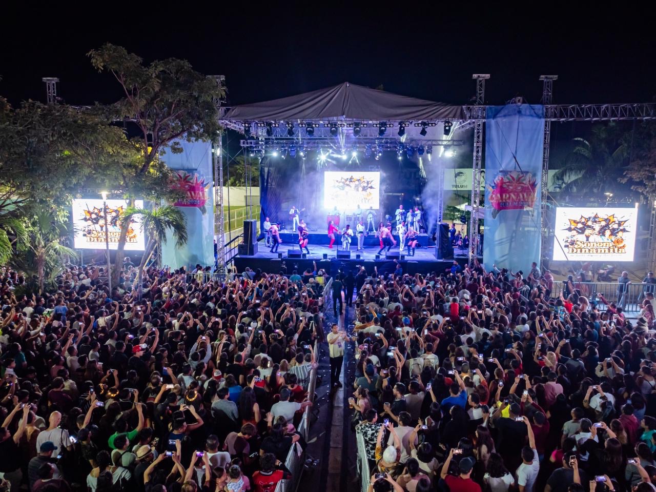 Previo y posteriormente al acto protocolario, el escenario lució llamativo con la presentación de comparsas. Más tarde vibró con más de 3,000 personas que disfrutaron de la presentación de Karenka Cuban Show y la Original Sonora Dinamita de Lucho Argain y Xiu García.