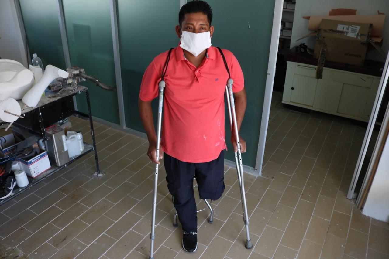 Uno más de los beneficiados es el señor Carlos López, quien lamentablemente perdió una pierna mientras trabajaba, el Sistema Dif le proporcionó atención médica, muletas y alimentos; además, se le está elaborando una prótesis, que sumada a la rehabilitación física ayudarán a que pueda retomar su vida. Él y su familia han sido atendidos de manera integral y se continuará con esta labor.