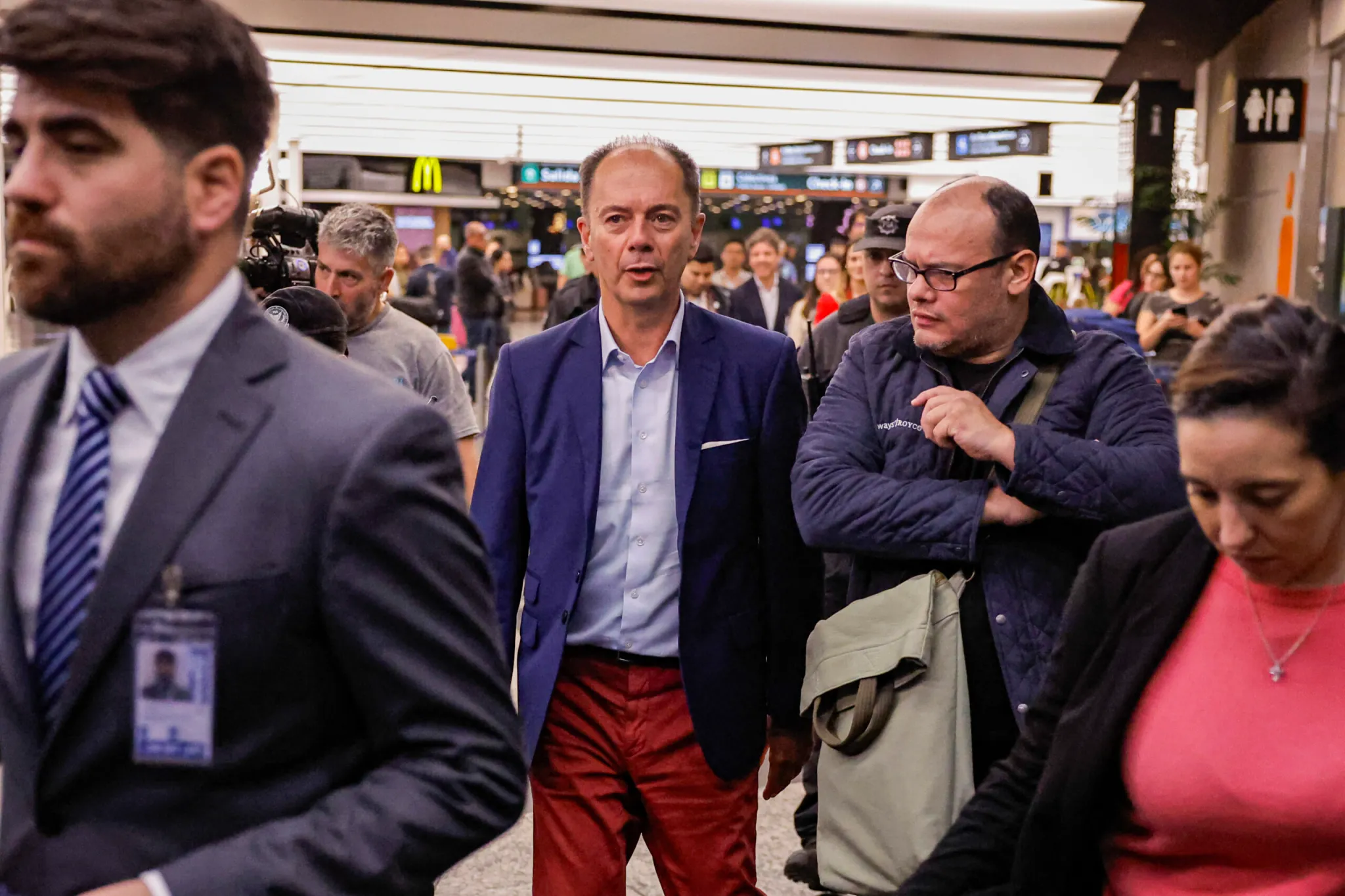 Andrés Mangiarotti, encargado de negocios de la embajada en Caracas, encabezó el grupo que llegó esta madrugada a Ezeiza y que fue recibido por el vicecanciller argentino, Leopoldo Sahores.