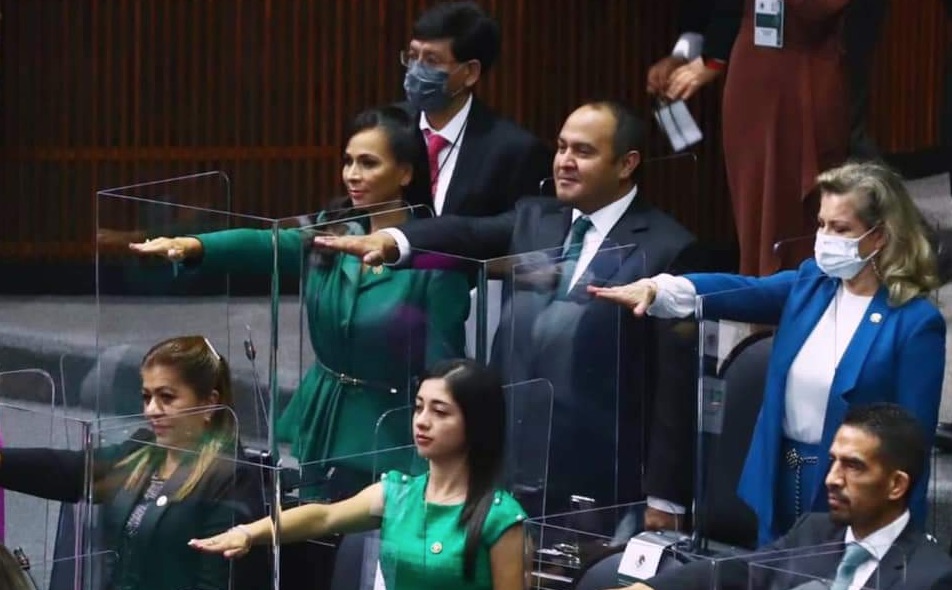 Enseguida, el presidente de Decanos, Gómez Villanueva, tomó la protesta a los diputados electos presentes, quienes se pusieron de pie y extendieron su brazo derecho: