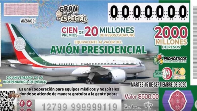 Aunque los cachitos se promocionan como una rifa del avión “José María Morelos y Pavón”, en realidad la rifa consiste en entregar 100 premios de 20 millones de pesos; la aeronave comprada en el sexenio de Felipe Calderón sigue a la venta.