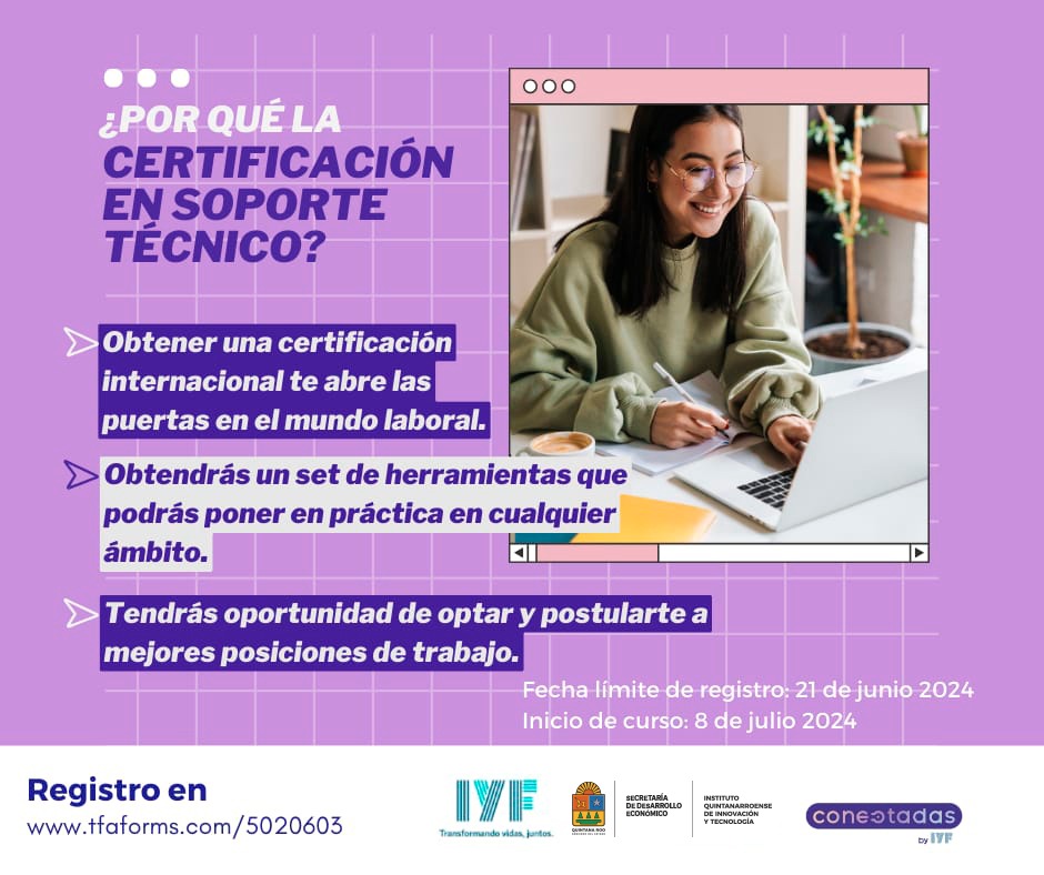 SEDE, en colaboración con #IQIT, la International Youth Foundation (IYF) y Google.org, se complace en invitar a todas las jóvenes interesadas a participar en la convocatoria para el Certificado de Soporte TI de Google.