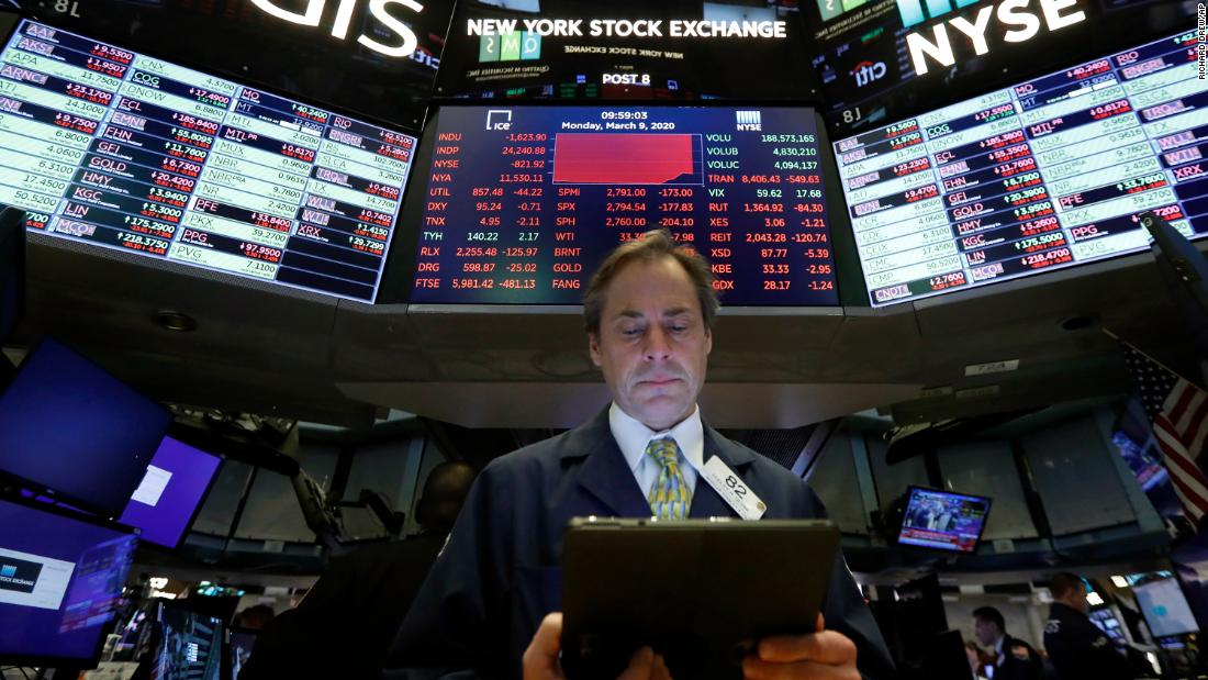 El índice Dow tuvo su peor caída de puntos en medio de los temores por la propagación del coronavirus y el desplome de los precios del petróleo. El índice cerró con una baja de 2.014 puntos, o 7,8%. Fue su peor día desde octubre de 2008.