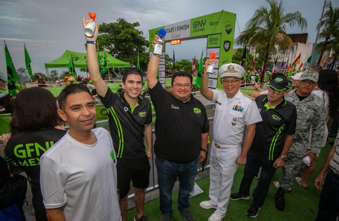 El presidente municipal, José Luis Chacón Méndez, realizó el disparo de salida del Gran Fondo New York (GFNY) 2024, acompañado por el vicealmirante Jesús Pineda y el subsecretario de Turismo de Quintana Roo, Andrés Aguilar, quien asistió en representación de la gobernadora del Estado, Mara Lezama Espinosa.