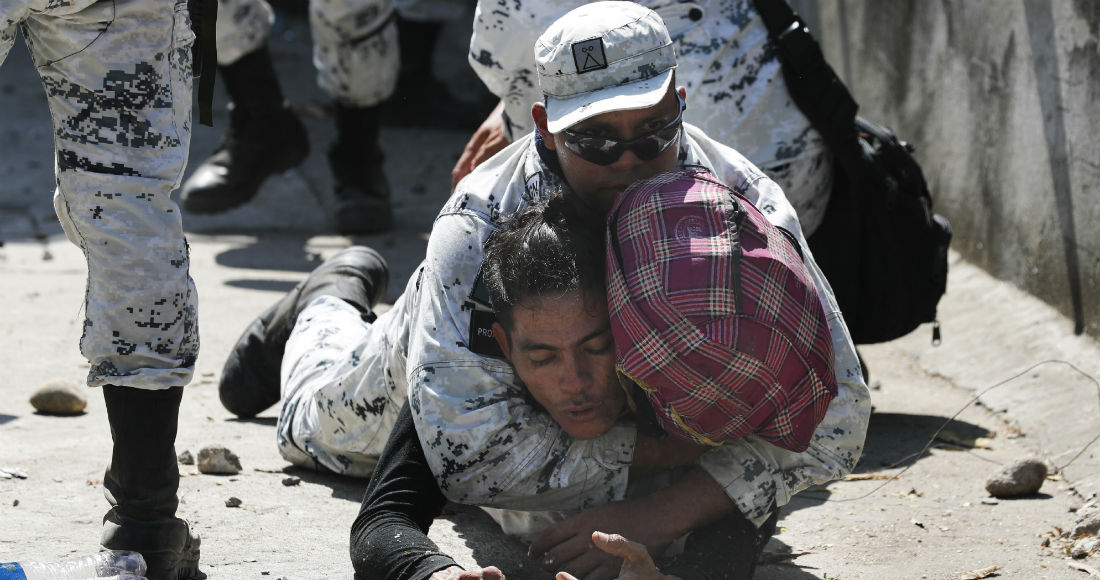 La Guardia Nacional intentó frenar el alud de gente con golpes y gases lacrimógenos. Posteriormente, arrestó a 402 personas que habían cruzado el río.