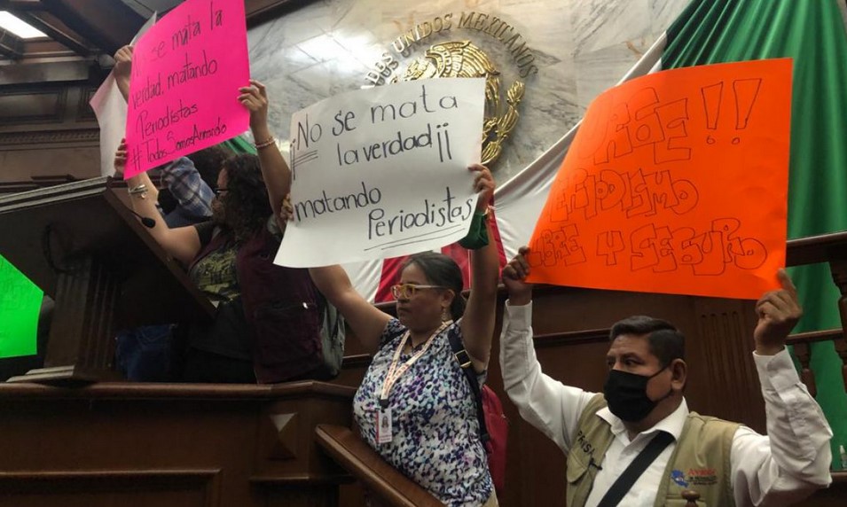Periodistas irrumpieron en el recinto legislativo para exigir justicia por los asesinatos de ocho compañeros, por el ejercicio de su labor.