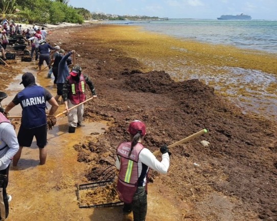 Las brigadas integradas por prestadores de servicios y voluntarios, continúan trabajando para retirar el plancton de las playas y poder ofrecer una buena imagen a los visitantes.
