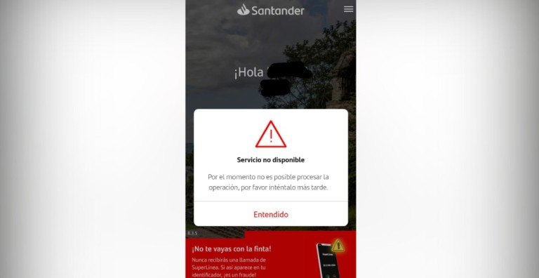 Hasta ahora, Santander no se ha pronunciado sobre la causa y, ante los reportes en redes sociales, sólo pide a los usuarios contactarlos por mensaje directo.