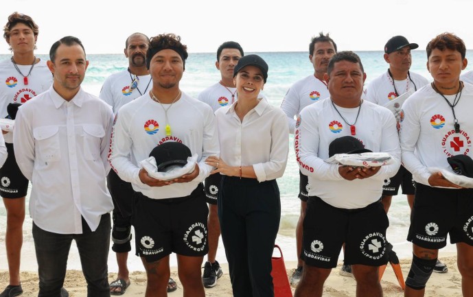 “Estoy con nuestro gran equipo de Guardavidas de Cancún, hombres y mujeres que entregan todo, en el rayo del sol y en la lluvia, siempre cuidando y protegiendo a los millones de visitantes. Hoy venimos a hacer la entrega del equipo de protección personal que son los uniformes, todo el equipamiento a este gran, gran equipo de guardavidas de los cuales nos sentimos sumamente orgullosos”, aseguró.