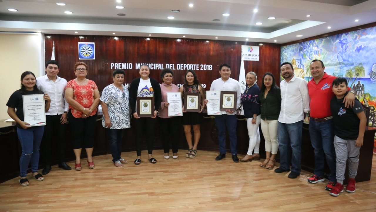 En reconocimiento a su destacada participación, así como a la promoción del deporte, el Club Marlins, Jovvana Pérez Maldonado y Oswaldo Ayerin Pinzón Dzul, fueron galardonados con el Premio Municipal del Deporte 2018 en las categorías de mejor equipo, mejor deportista y mejor entrenador, respectivamente.