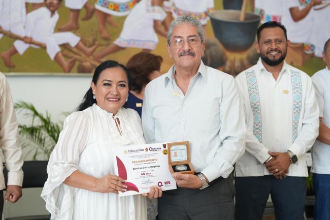 Destacó que 40 años se dice fácil, pero detrás de esas dos palabras hay una vida entera de entrega, de esfuerzo, de alegrías, desafíos y aprendizajes de 18 maestras y 28 maestros quintanarroenses que enseñaron con amor.