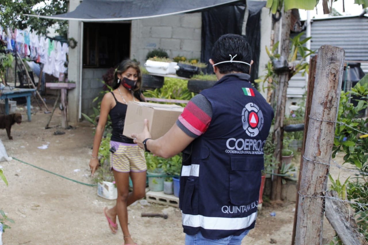 Fueron los elementos de Protección Civil de Quintana Roo, quienes ha sido los encargados de hacer las entregas a los afectados de la zona sur.