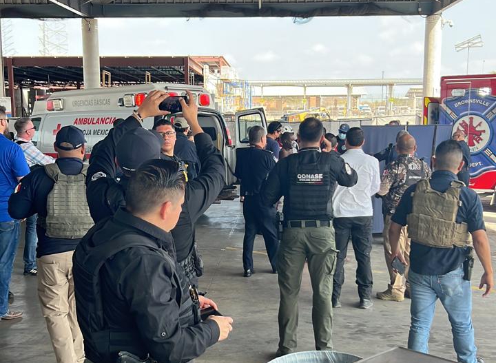 Corporaciones federales y estatales, con personal de Consulado de Estados Unidos en Matamoros, entregaron en puente internacional a los 2 ciudadanos localizados hoy luego que fueron privados de su libertad el pasado 3 marzo.