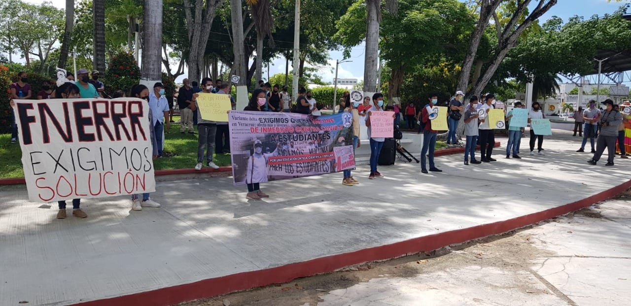 Yari Ajanel Alejo, representante de la FNERRR en Quintana Roo, explicó que esta manifestación pacífica la realizan en apoyo a la marcha nacional que se efectúa hoy en la Ciudad de México, para igualmente protestar contra el retorno a las clases presenciales sin que se vecune a los alumnos antes.